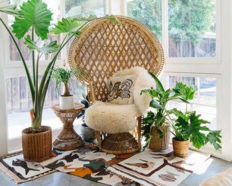 Op nog grotere schaal aanwezig dan in 2019 zijn de natuurlijke materialen. Bamboe en riet zijn leading. Denk maar eens aan een grote peacock stoel van gevlochten bamboe, die willen wij ook wel.