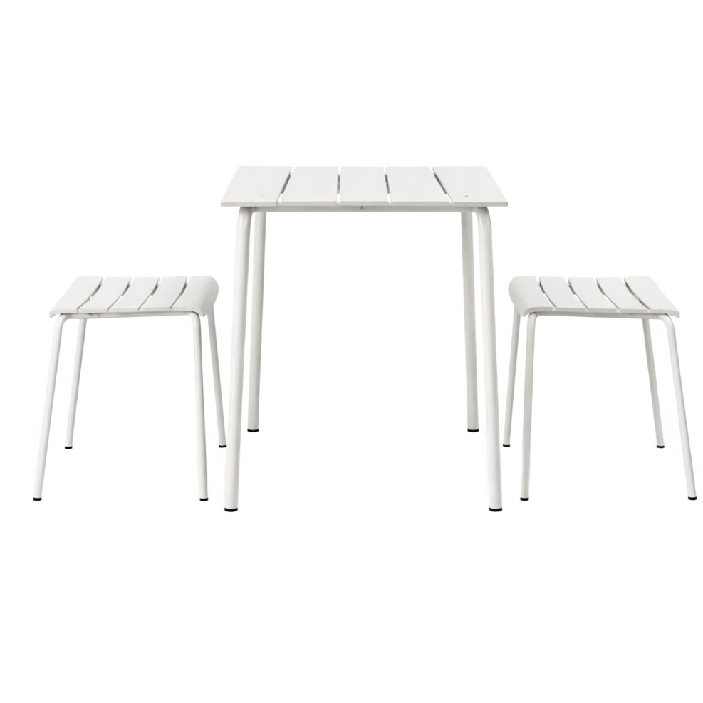 Let op: deze set bevat 1x Tuintafel S off-white en 2x Kruk off-white.