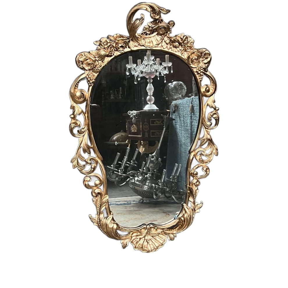 Antieke houten spiegel in rococostijl. Massief walnotenhout. Frankrijk. Eind 18e eeuw. 126 x 78 cm.