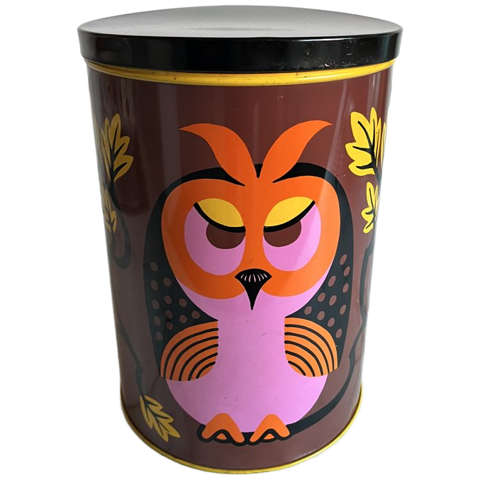 Prachtig jaren 70 bewaar blik met drie uilen als decoratie. In prima vintage staat, minimale gebruikssporen. Zéér decoratief!