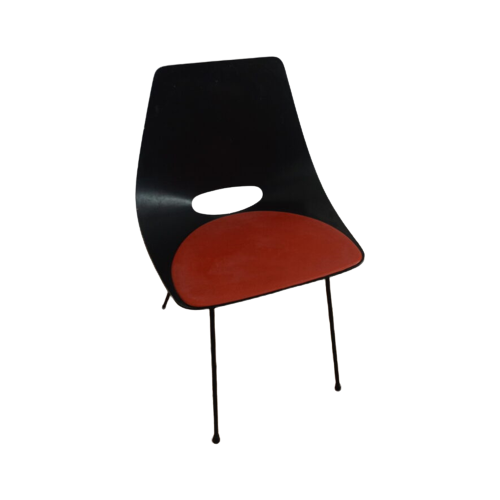 Beschrijving: Ontworpen door Pierre Guariche, geproduceerd door Steiner (Frankrijk) rond 1958, gebogen multiplex/metalen frame, zeer goede staat Gewicht: 6 Afmetingen: 40 cm x 50 cm x 76 cm