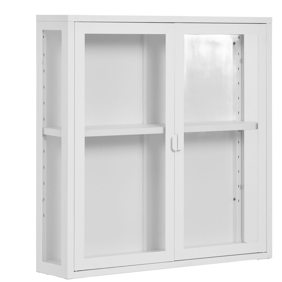 De kast is gemaakt van staal en heeft twee glazen deuren. De constructie is stevig en duurzaam, waardoor je jarenlang plezier hebt van dit meubelstuk.