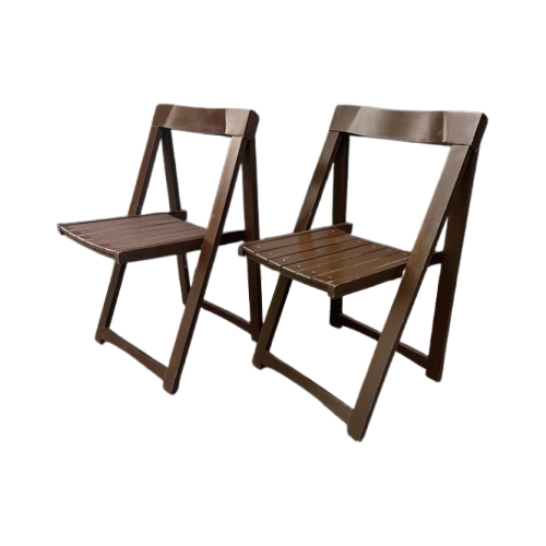 Deze in de jaren ’60/’70 populaire houten klapstoel is een ontwerp van de Italiaanse designer Aldo Jacober uit de jaren ’60. Deze bruine exemplaren zijn in goede vintage-conditie. Hebben voor de leeftijd normale gebruikssporen.