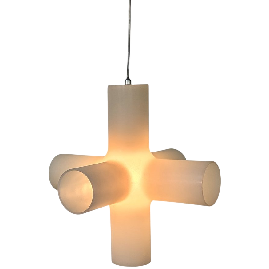 Ontwerp van Jan Melis & Ben Oostrum voor het Belgische topmerk Dark. Modelnaam Crosslight. De 3D-kruis van hoogwaardig wit kunststof met open buisuiteinden. Apart effect. Jaren 90. Is ook te gebruiken als tafellamp of als vloerlamp. In een goede staat.