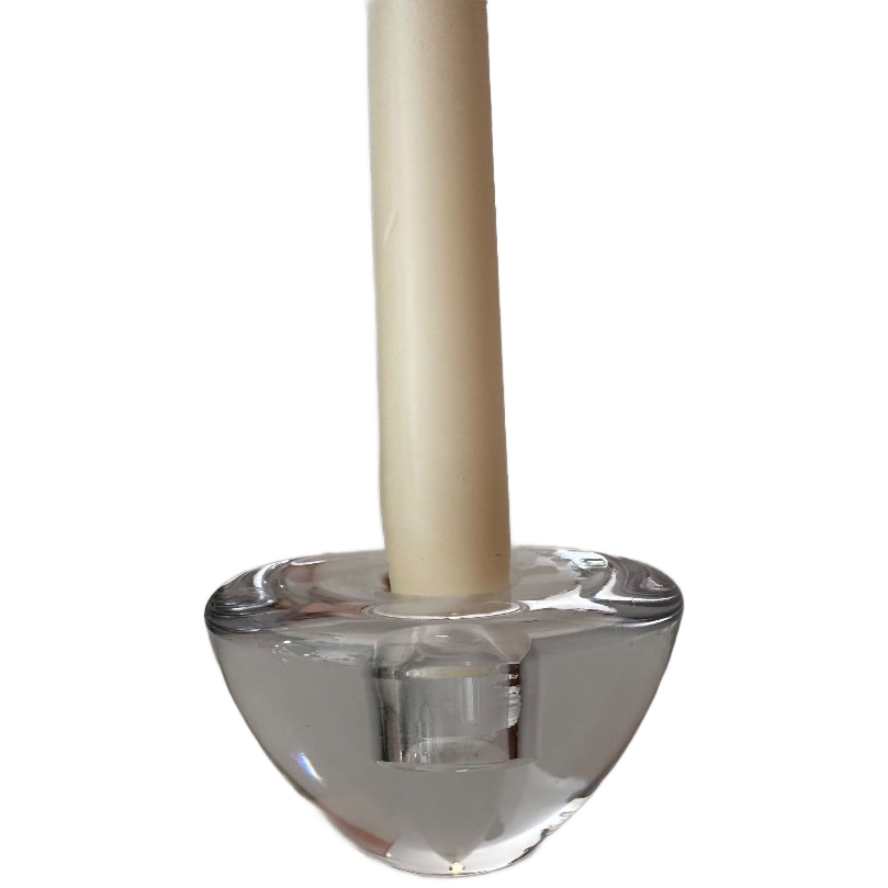 Massief kristallen kandelaar met een strak, minimalistisch design. Door de verzonken opening lijkt de kaars te zweven. Q967 Materiaal: massief kristalglas Kleur: helder transparant Afmetingen: hoogte ca. 6 cm, diameter ca. 9 cm Gewicht: stevig en zwaar Geschikt voor dinerkaars