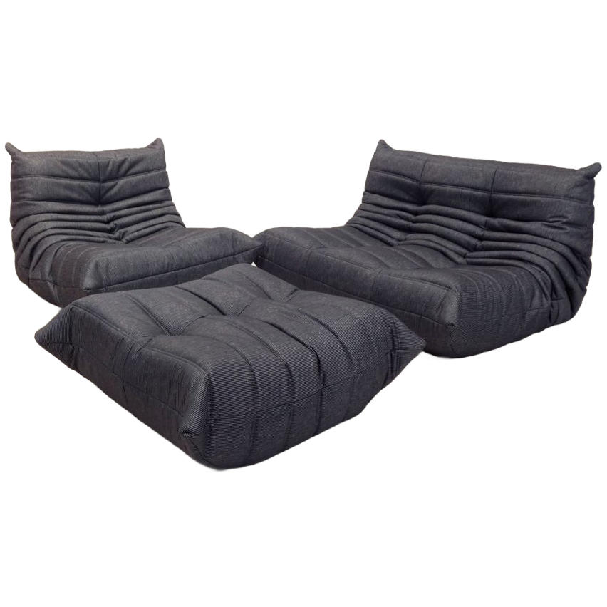 Ligne Roset Togo Set - 1 - 2 Seater & Ottoman - Pinstripe Fabric