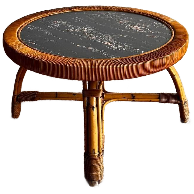 Rotan bamboe salontafel mer marmer look blad vintage