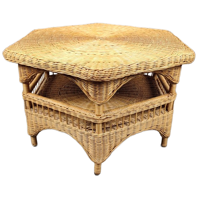 Vintage rotan salontafel. Met opbergruimte onder het tafelblad. In goede staat. Op 1 plek is de rotan wat los. Zie laatste foto. 80 x 91cm en 52cm hoog.