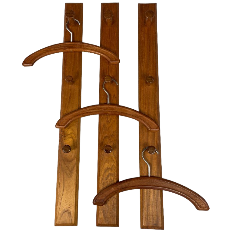 Vintage Teakhouten Wandkapstok Met Hangers, Aksel Kjersgaard Voor Odder Mobler, Denemarken 1960's